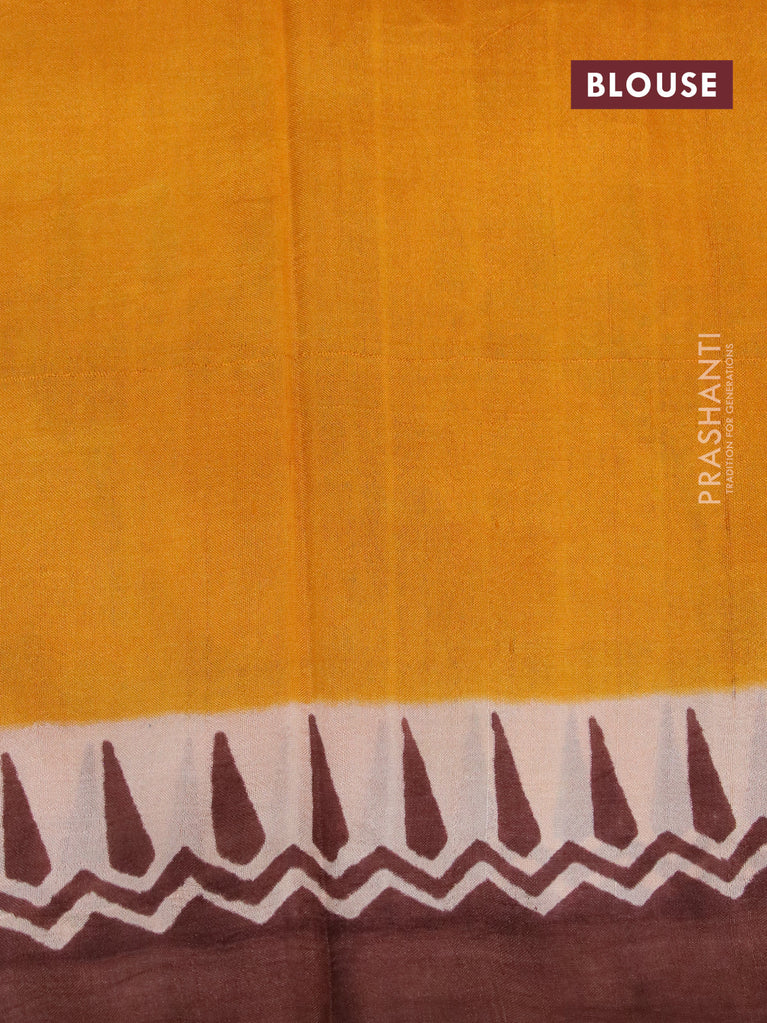 This is a yellow handwoven Ikat silk blouse with multi-colour design that makes you perfectly ready for the spotlight!