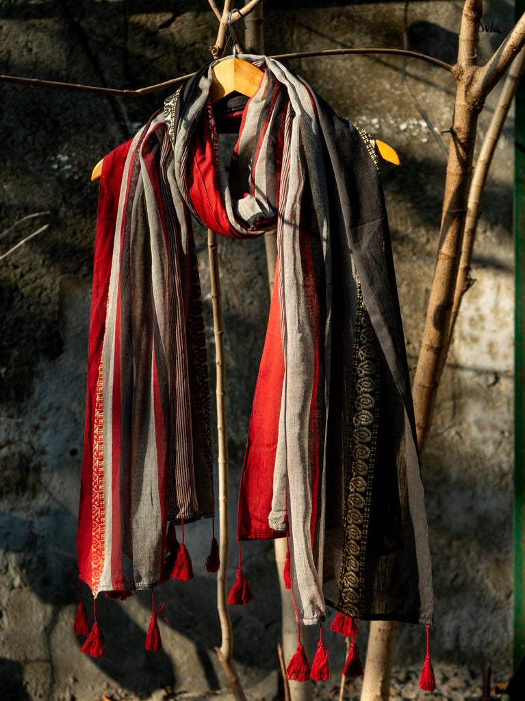Embrace elegance with the Blackberry Jam dupatta. Woven from soft mul cotton, its deep black hue adds a touch of mystery, making you feel sophisticated and refined with every wear.