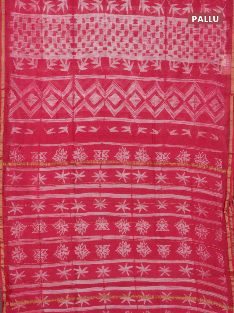 Chanderi bagru saree sap green with butta prints and small zari woven border