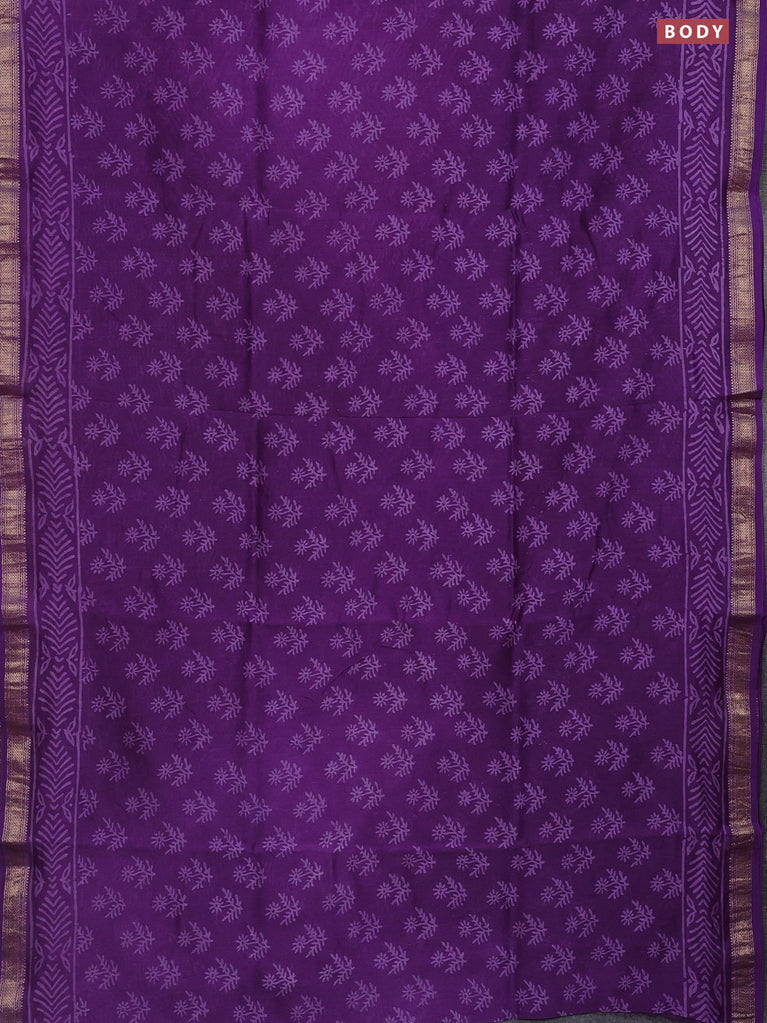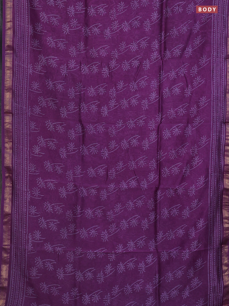 Chanderi bagru saree violet with floral butta prints and long printed zari border