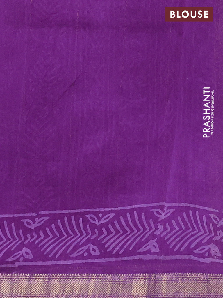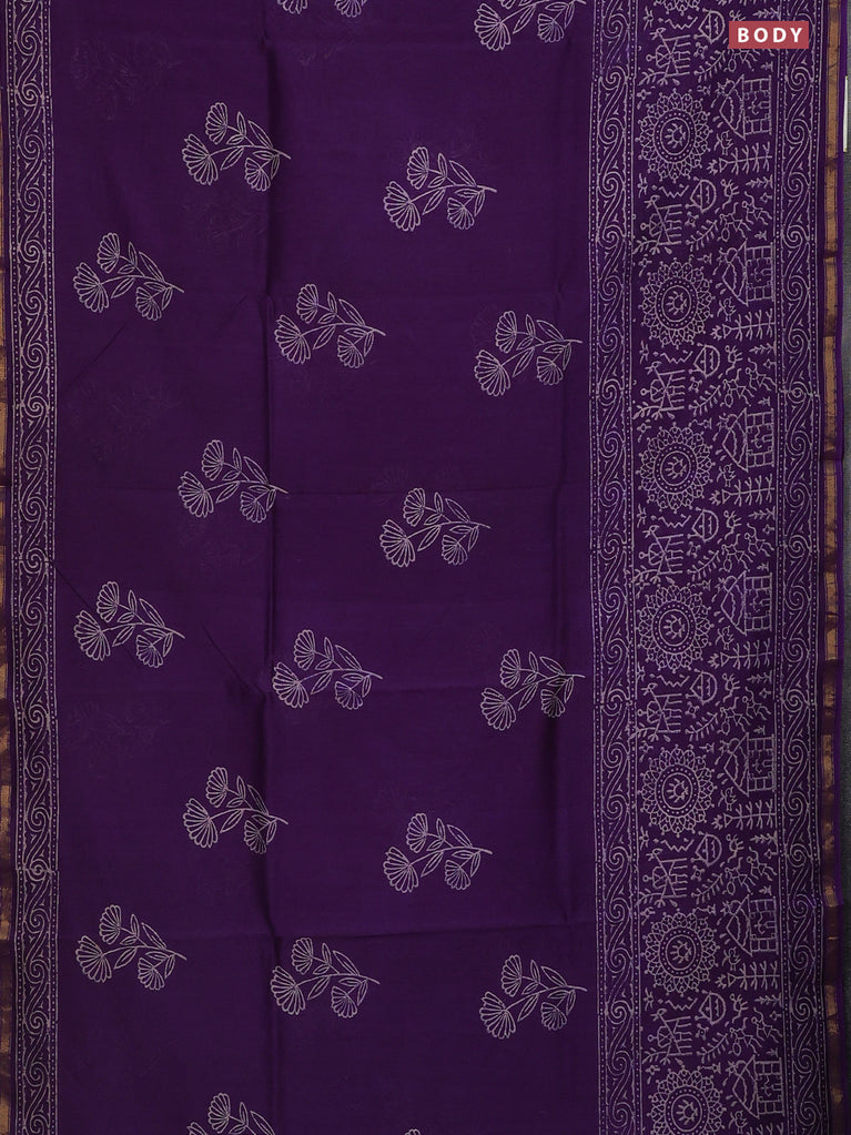 Chanderi bagru saree purple with allover prints and mageshwari border