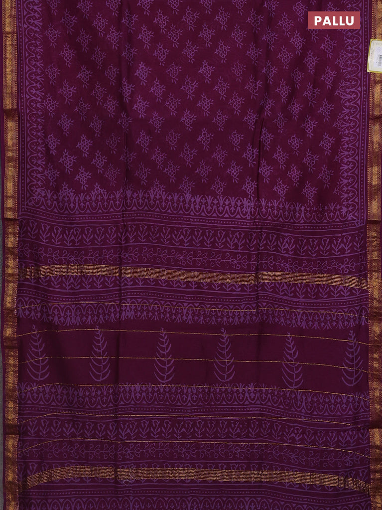 Chanderi bagru saree violet with allover floral butta prints and maheswari border