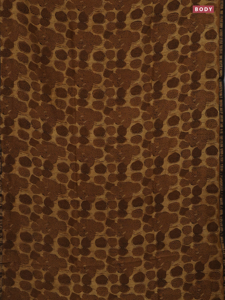 Chanderi silk cotton saree brown and sandal with allover zari buttas and printed border
