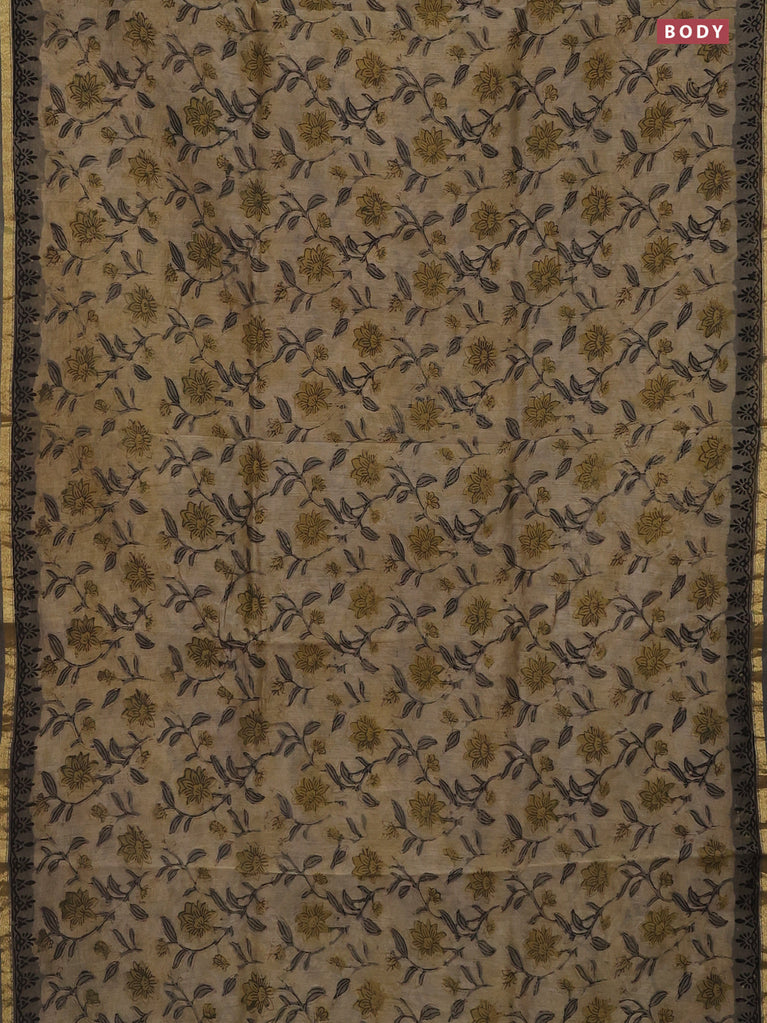 Chanderi bagru saree sandal and brown with allover floral butta prints and small zari woven border