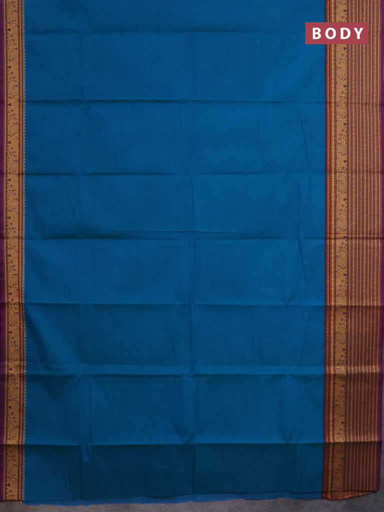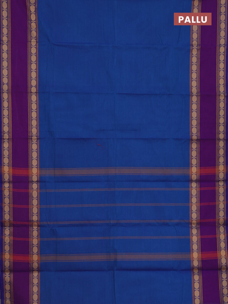 Chettinad cotton saree cs blue and purple with palin body and long thread woven border