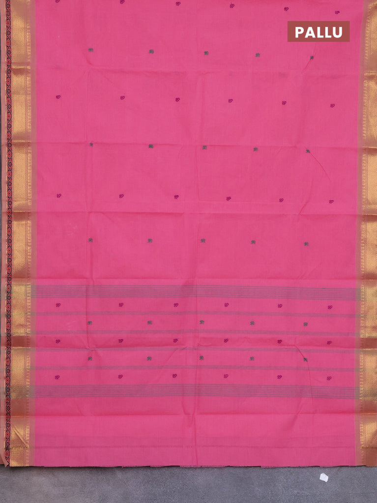 Chettinad cotton saree candy pink and beige with thread woven buttas and zari woven border