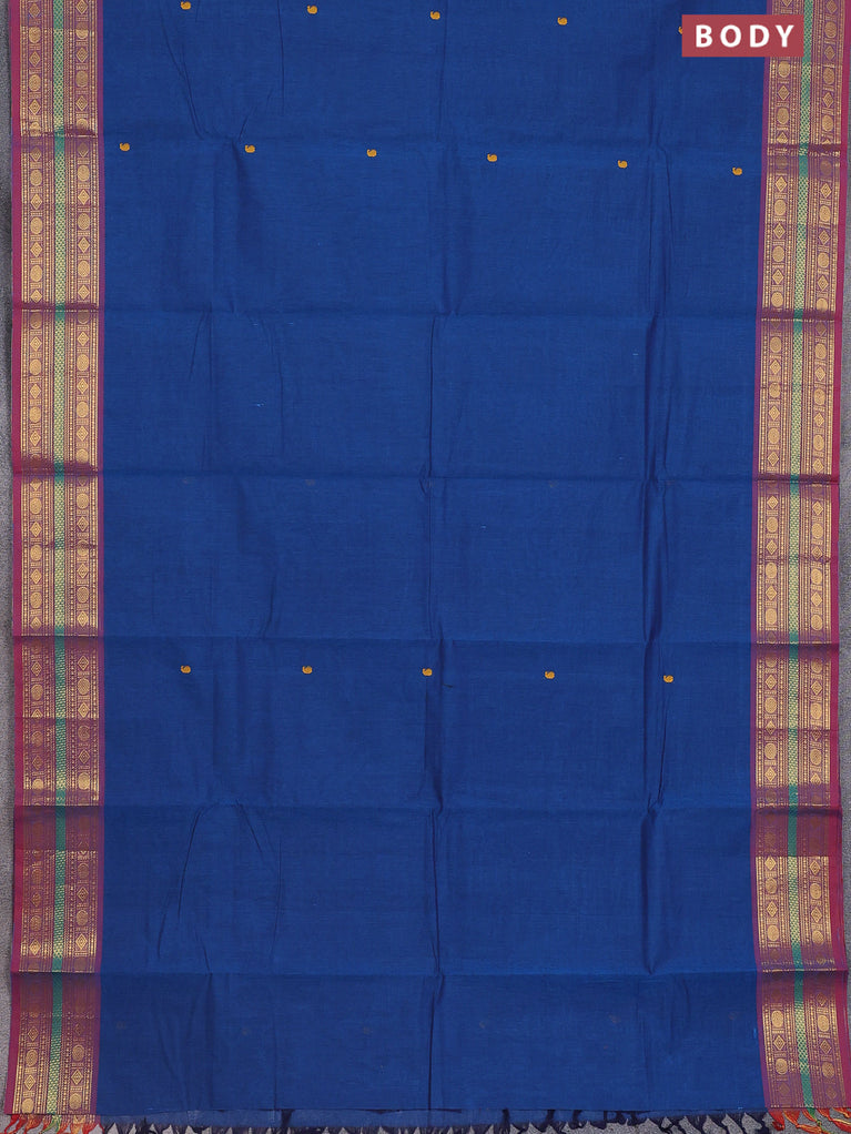 Chettinad cotton saree cs blue and dark pink with thread woven buttas and zari woven border