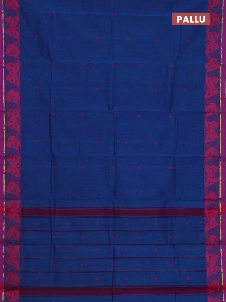 Chettinad cotton saree cs blue and drak pink with thread woven buttas and zari woven border
