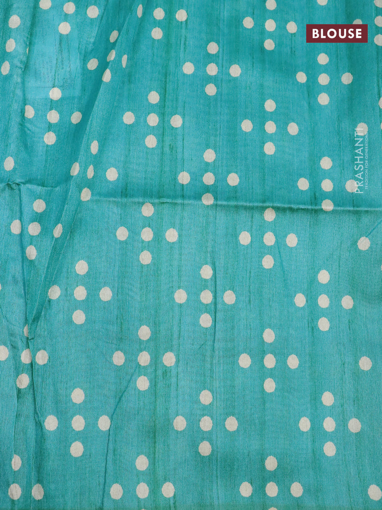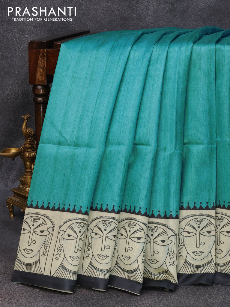 Chappa saree teal blue and cream with plain body and madhubani printed border
