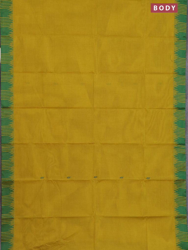 Chettinad cotton saree lime yellow and green with thread woven buttas and temple design thread woven border