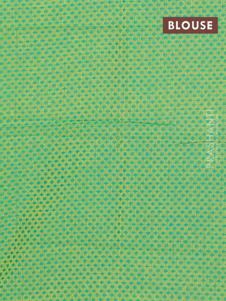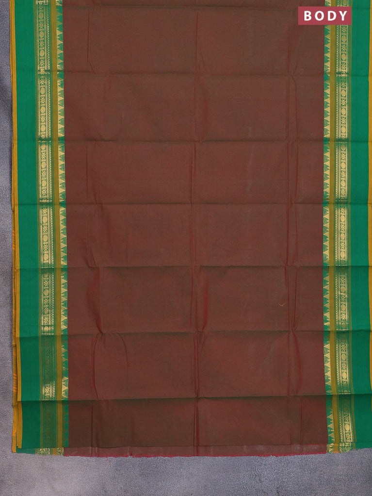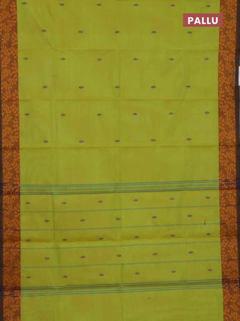 Chettinad cotton saree lime green and brown with plain body and leaf design border