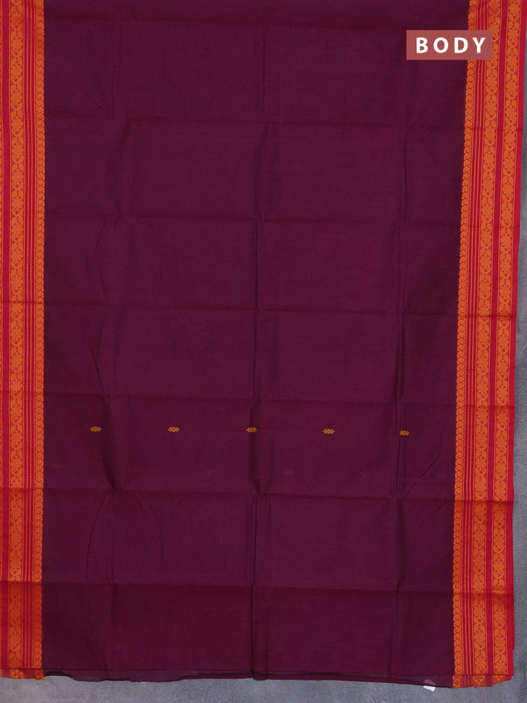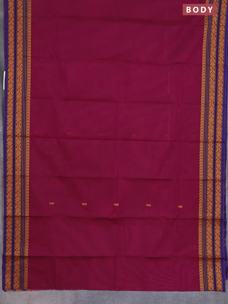 Chettinad cotton saree magenta pink and dark violet with thread woven buttas and temple disign zari woven border