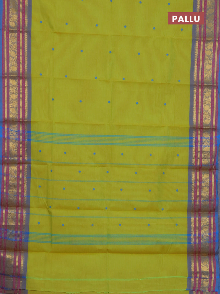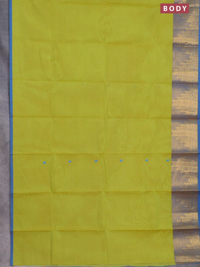Chettinad cotton saree lime yellow and green with thread woven buttas and thread & zari woven border