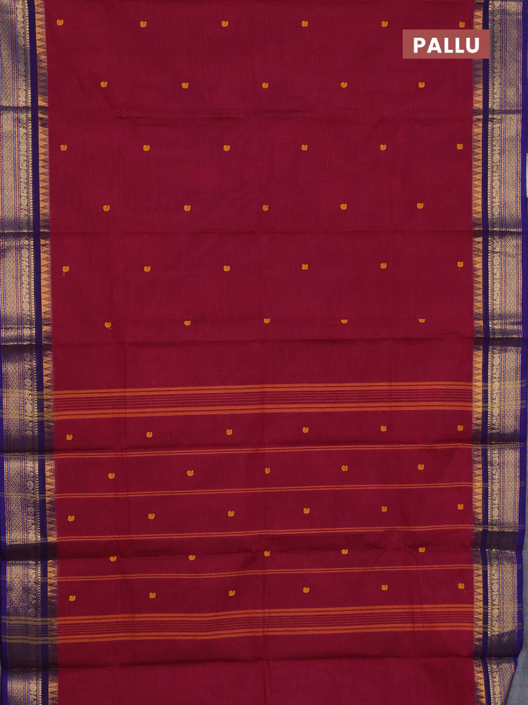 Chettinad cotton saree magenta pink and blue with thread woven buttas and thread woven border
