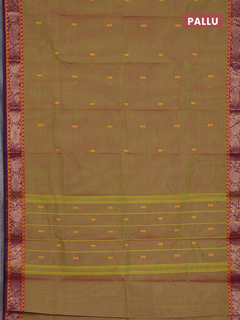 Chettinad cotton saree manthulir green and dark magenta pink with thread woven buttas and zari woven border