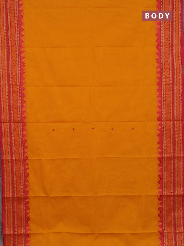 Chettinad cotton saree mango yellow and pink with thread woven buttas and thread woven border