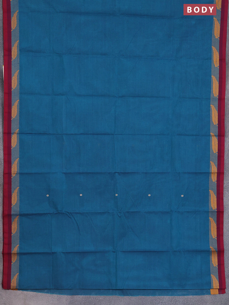 Chettinad cotton saree navy blue and maroon with thread woven buttas and zari woven border