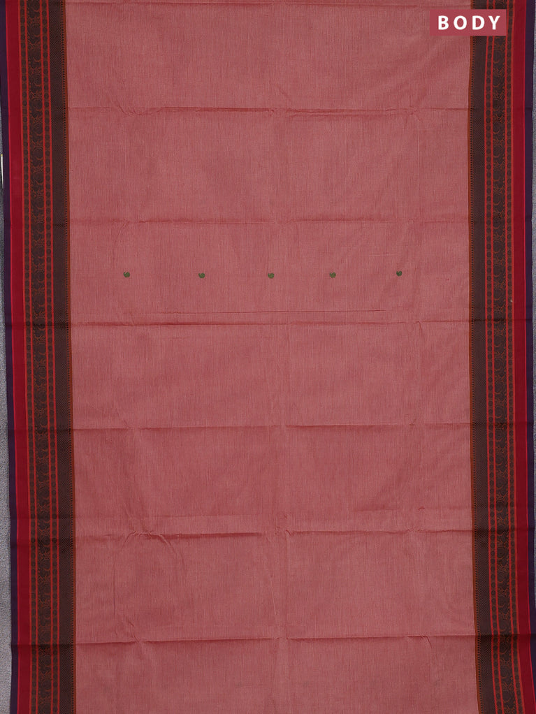 Chettinad cotton saree peach pink and green with thread woven buttas and thread & zari woven border