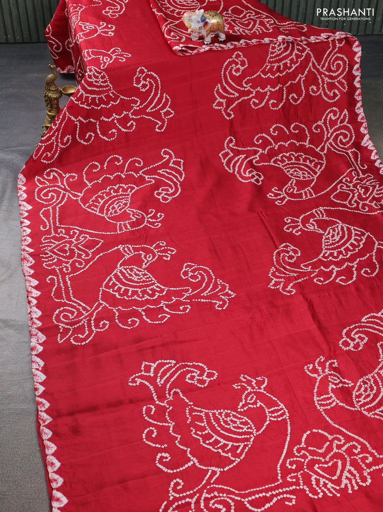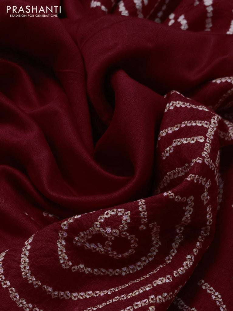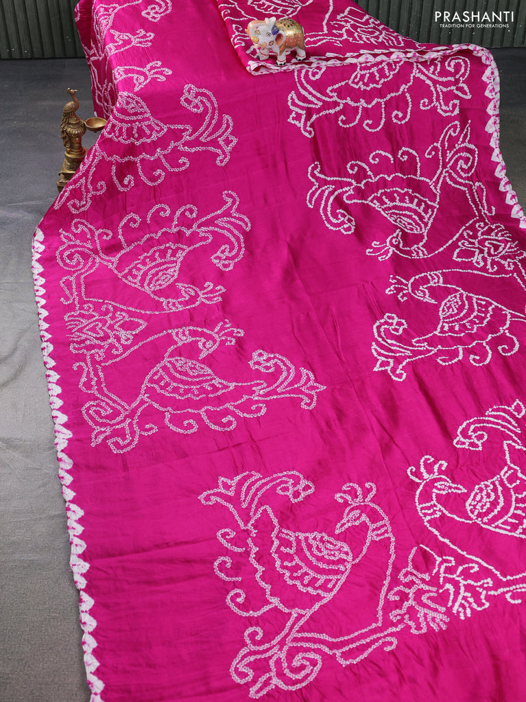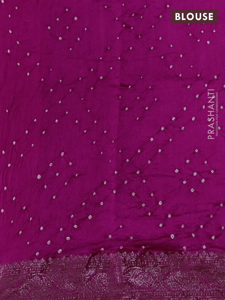 Chiniya silk saree magenta pink and military green with allover zari buttas & bandhini prints and zari woven border