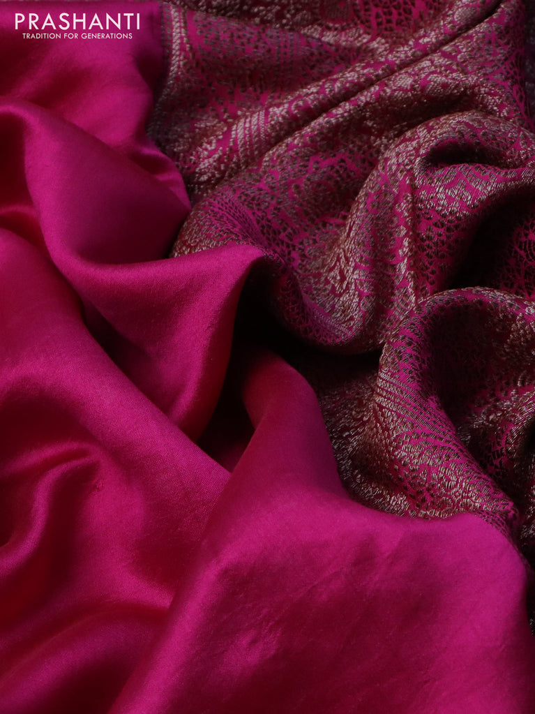 Chiniya silk saree magenta pink and black with plain body and woven border