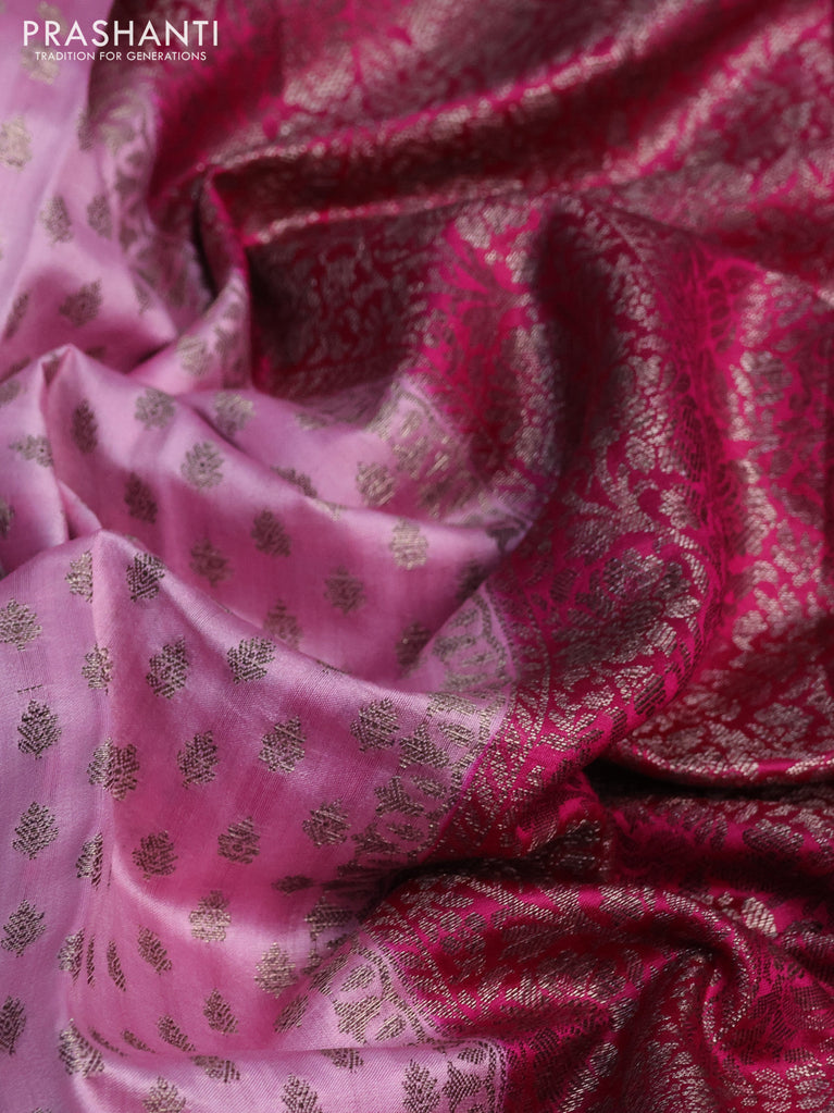 Chiniya silk saree light pink and pink with allover thread & zari woven buttas and banarasi style border