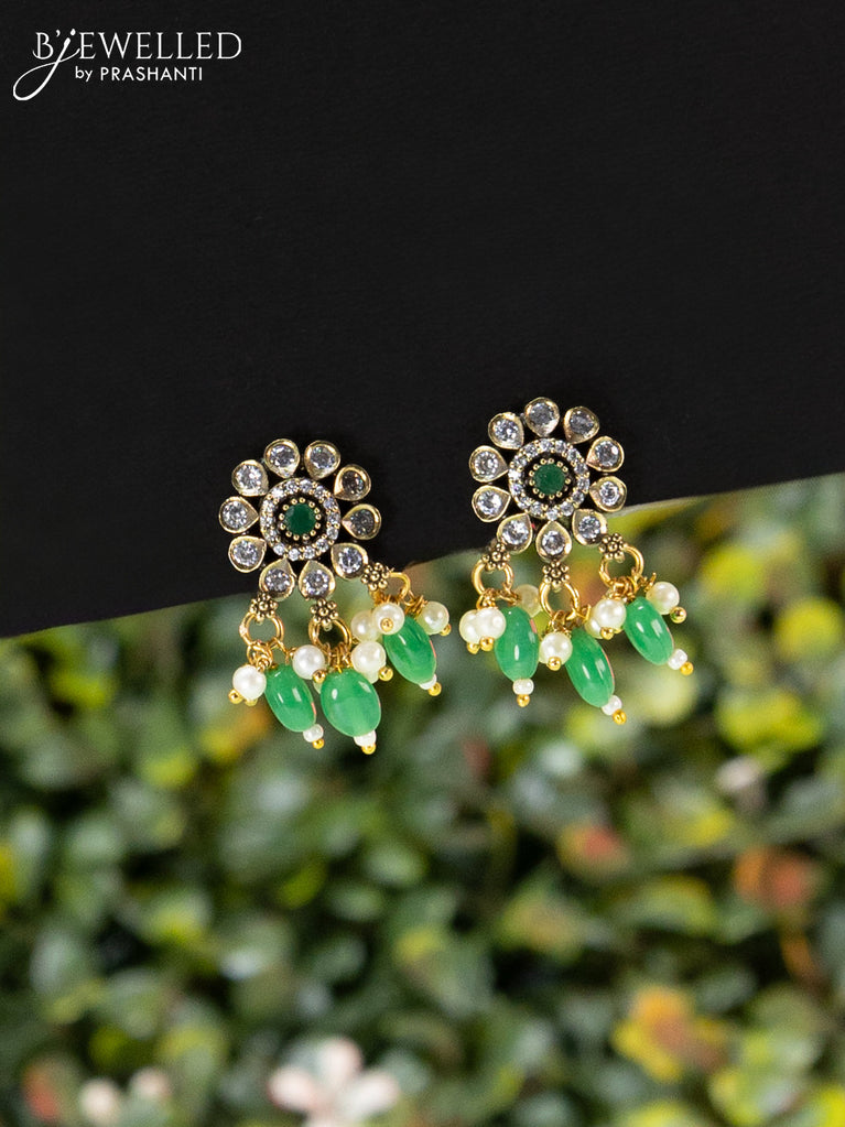 Choker peacock design with emerald & cz stones and beads hangings in victorian finish