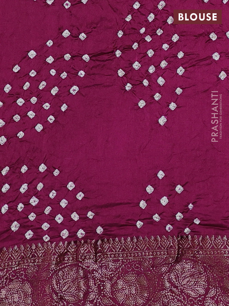 Chiniya silk saree wine shade with allover silver zari buttas & bandhini prints and silver zari woven border
