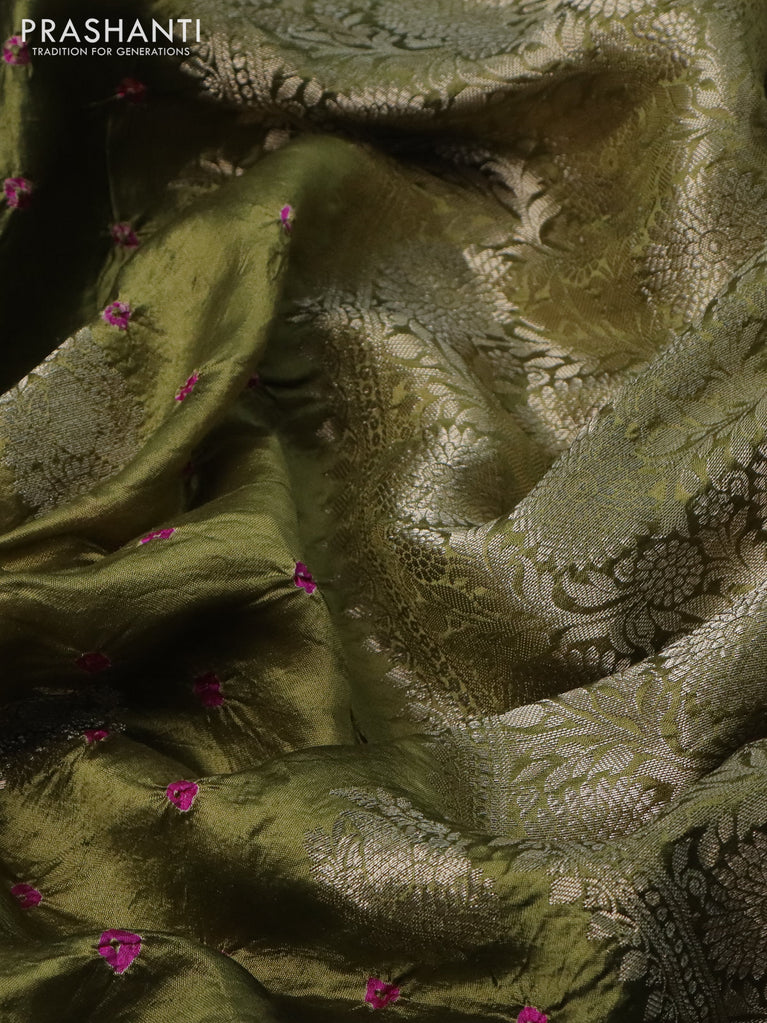 Chiniya silk saree sap green and deep maroon with allover zari weaves & bandhini prints and zari woven border