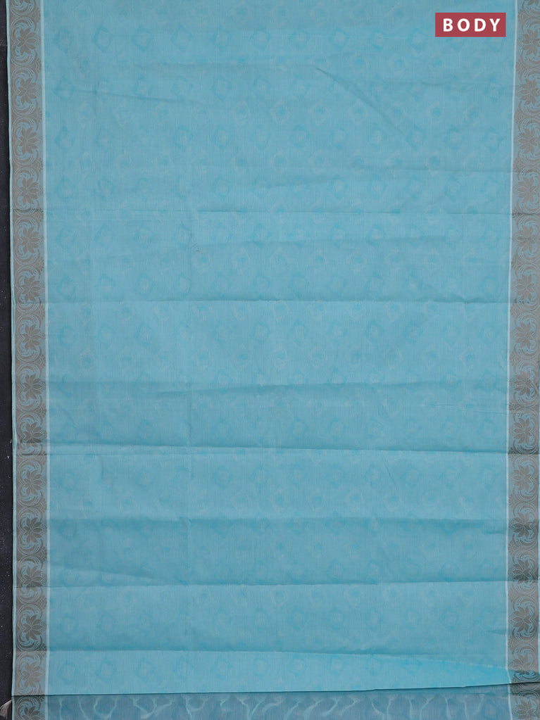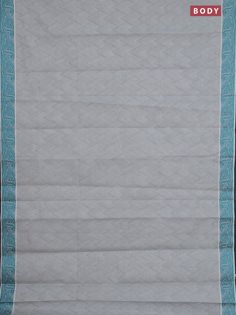 Coimbatore cotton saree grey and teal green with allover self emboss and thread woven border