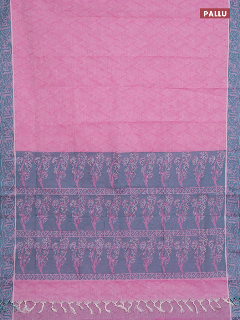 Coimbatore cotton saree lotus pink and teal green with allover self emboss and thread woven border