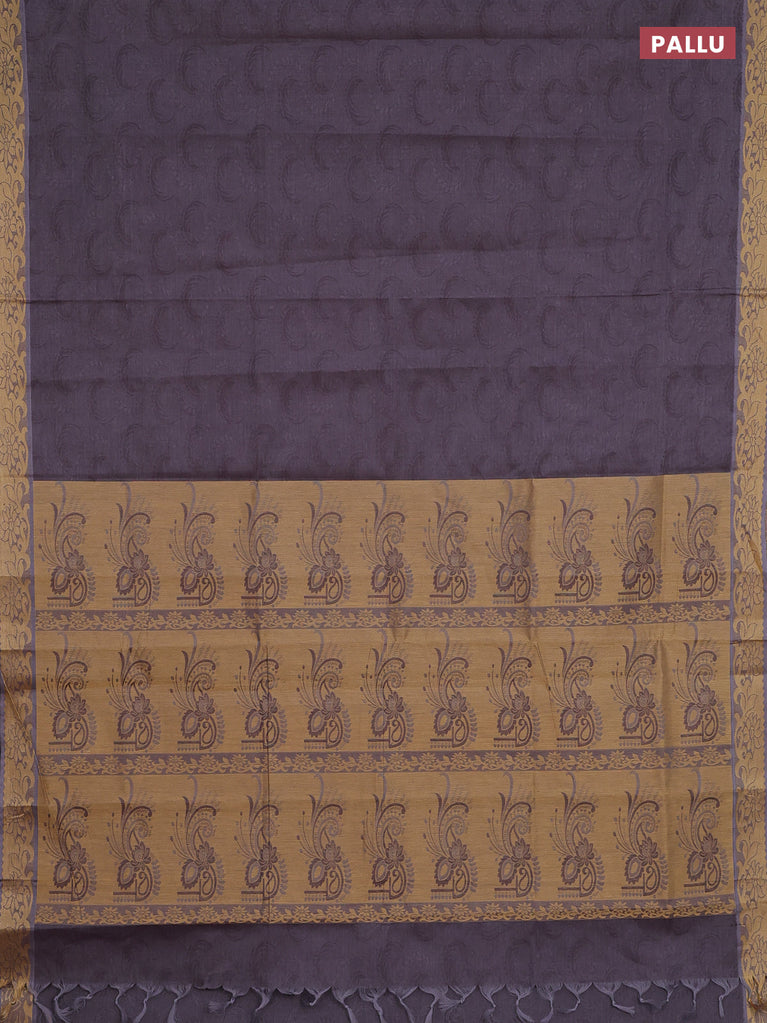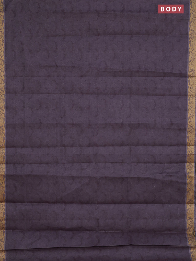 Coimbatore cotton saree greyish blue and sandal with allover self emboss and thread woven border