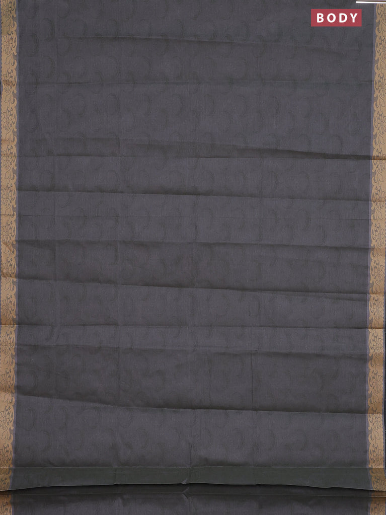 Coimbatore cotton saree grey shade with allover self emboss and thread woven border