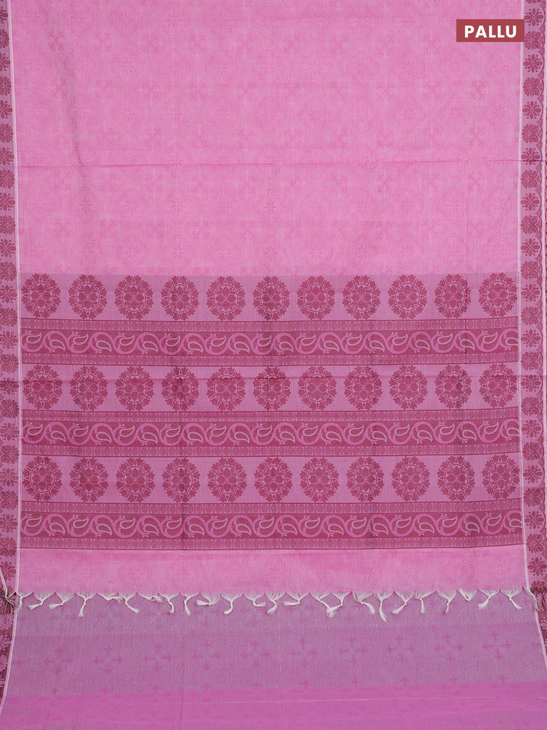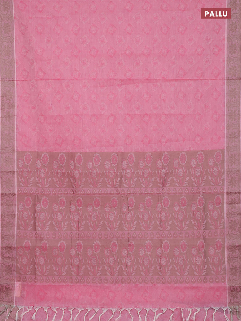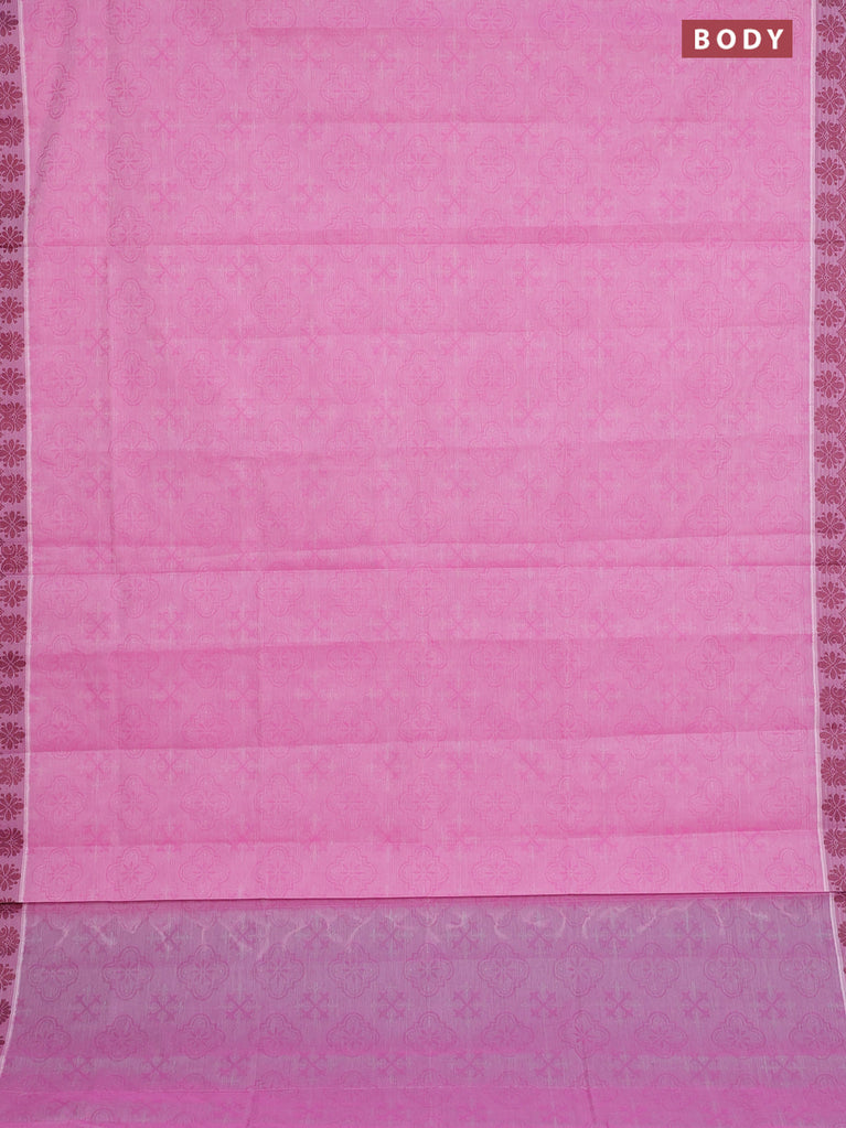 Coimbatore cotton saree light pink and maroon with allover self emboss and thread woven border