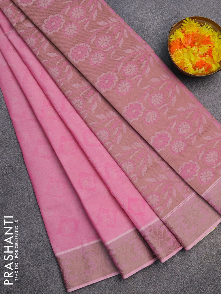 Coimbatore cotton saree light pink and beige with allover self emboss and thread woven border