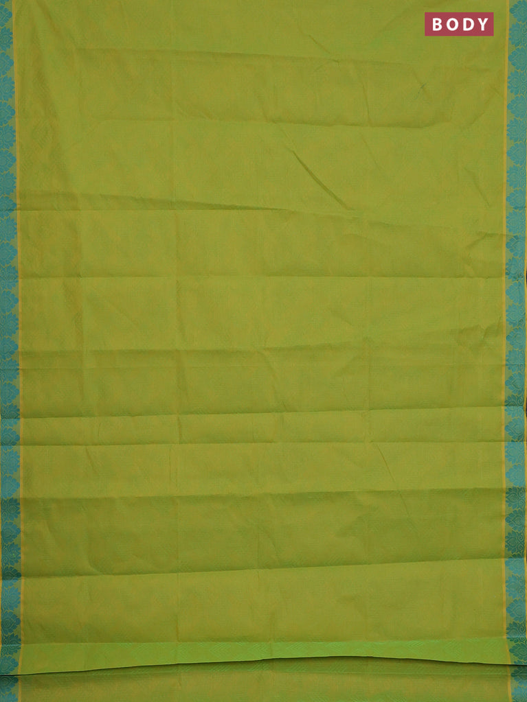 Coimbatore cotton saree light green and teal blue with allover self emboss and thread woven border
