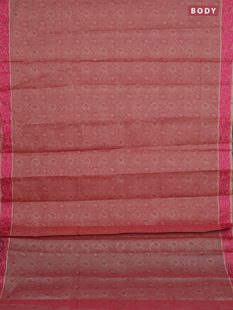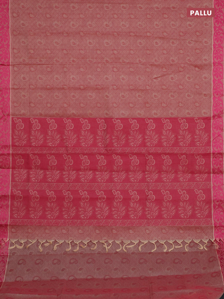 Coimbatore cotton saree magente pink and sandal with allover self emboss and thread woven border