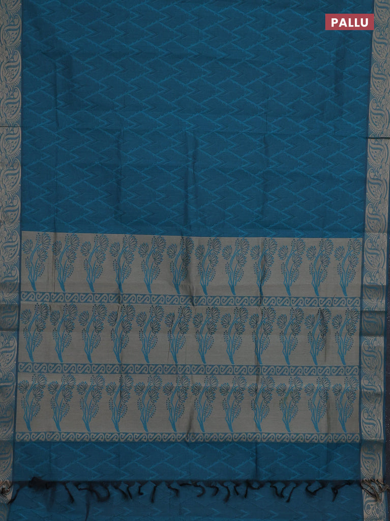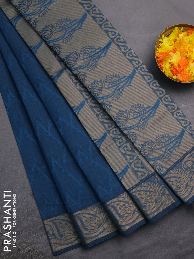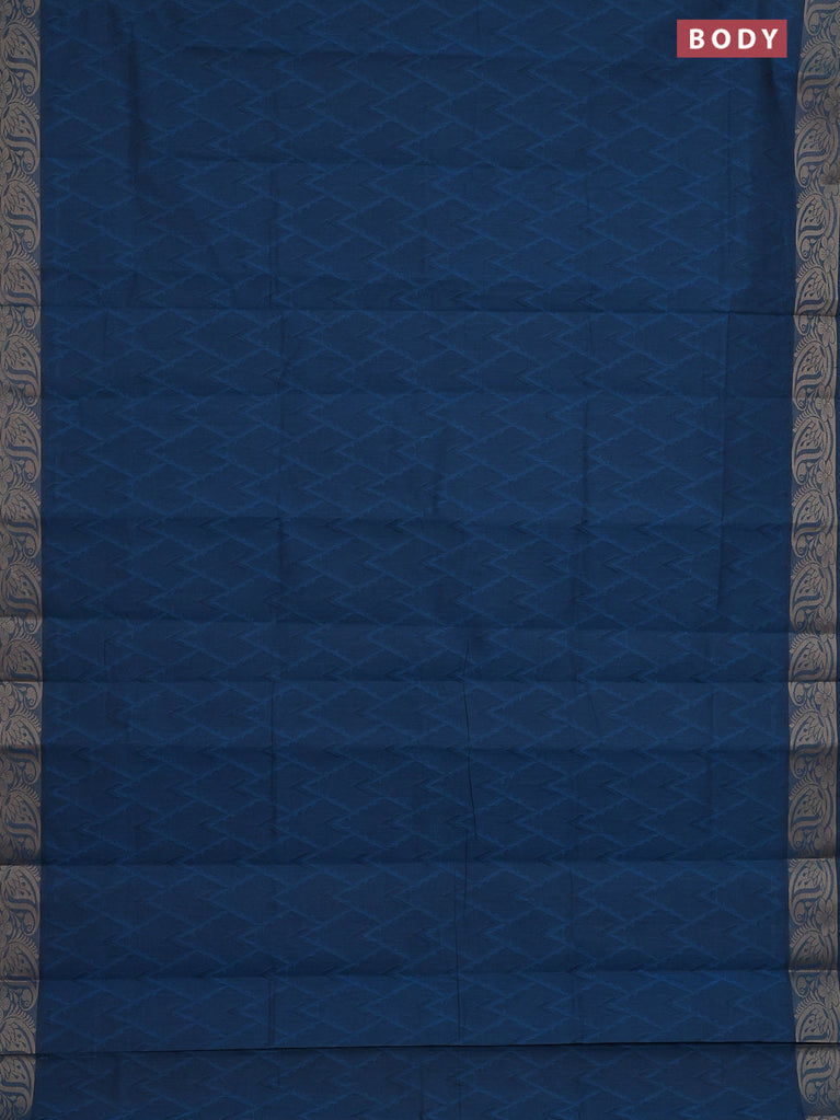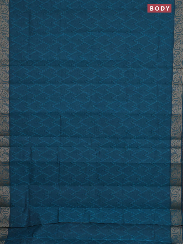 Coimbatore cotton saree peacock blue with allover self emboss and thread woven border