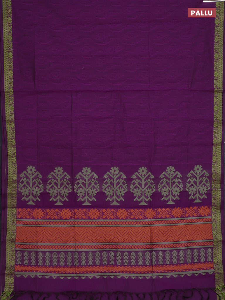 Coimbatore cotton saree purple and light green with allover self emboss and thread woven border