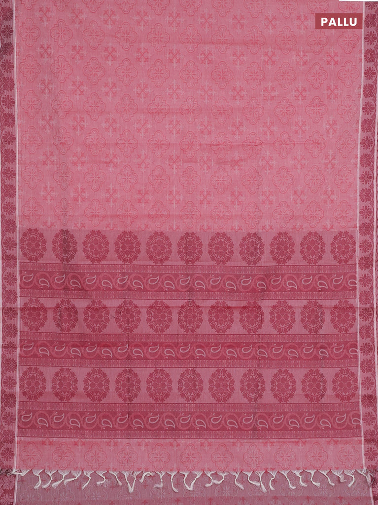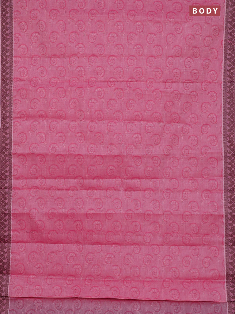 Coimbatore cotton saree pink with allover self emboss and thread woven border