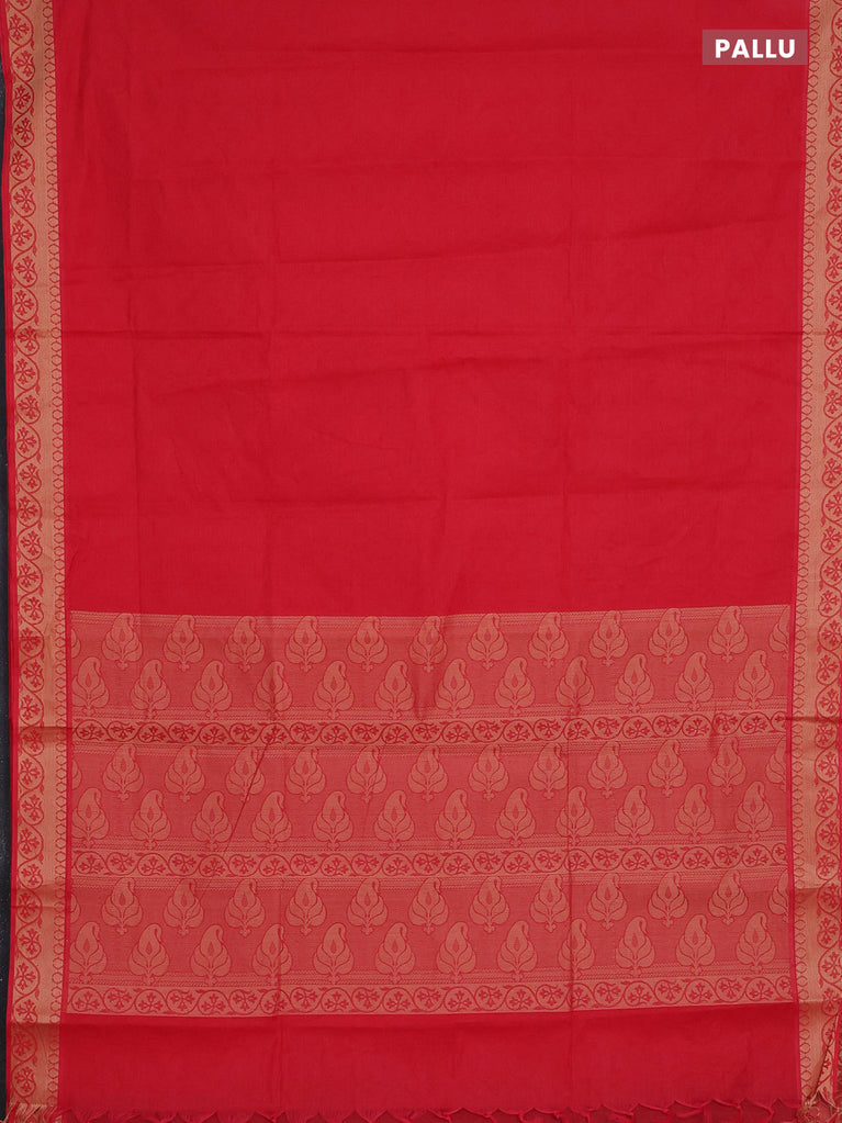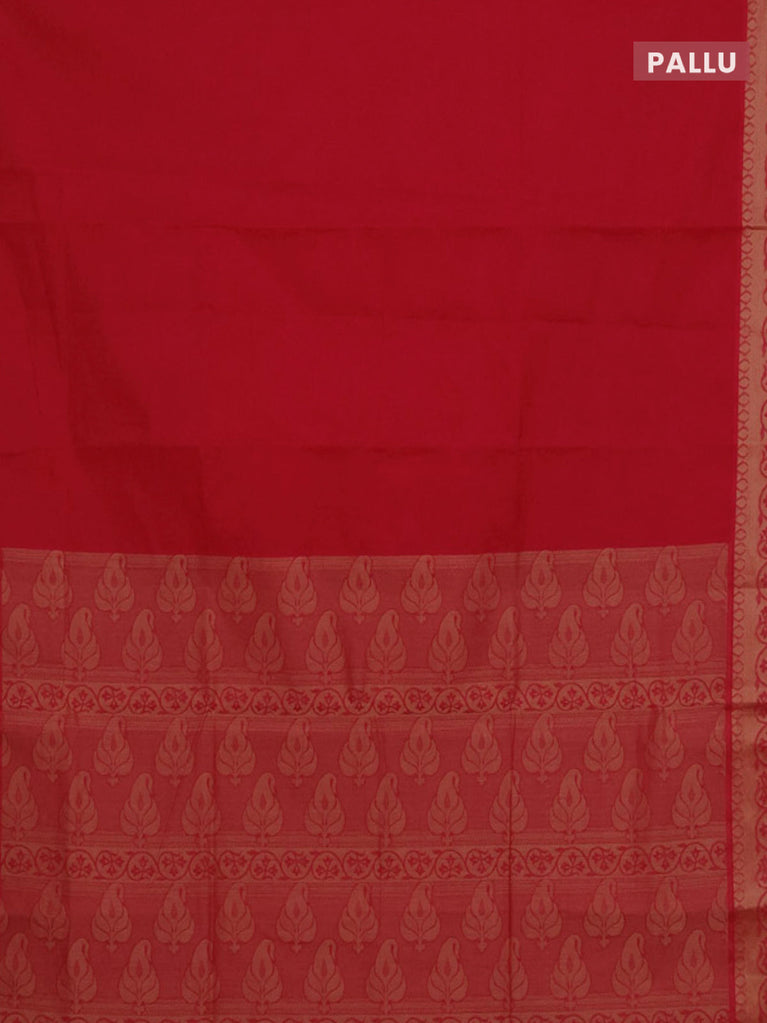 Coimbatore cotton saree red with allover self emboss and thread woven border