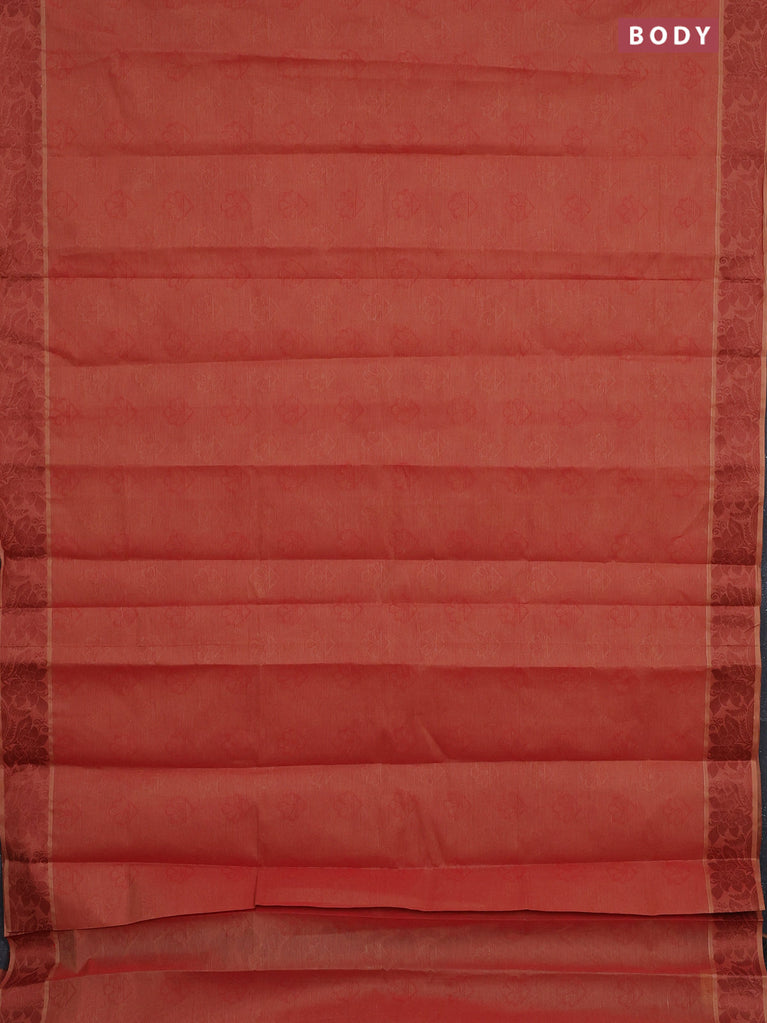 Coimbatore cotton saree rust shade and brown with allover self emboss and thread woven border