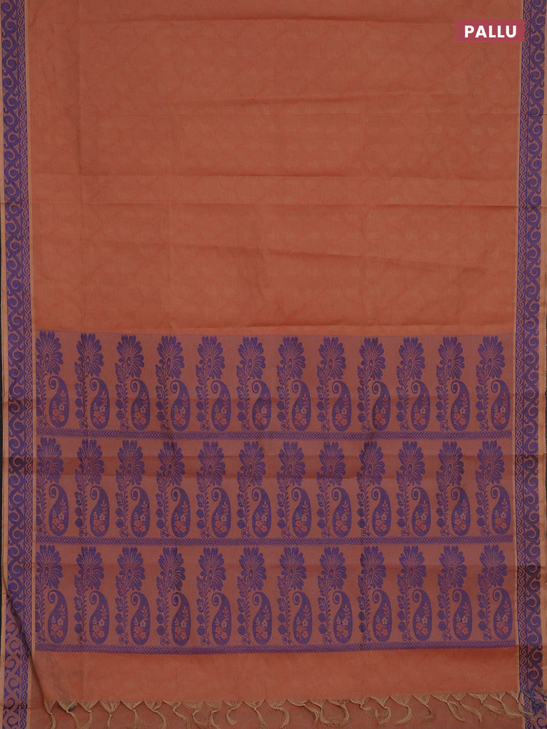 Coimbatore cotton saree rust shade and blue with allover self emboss and thread woven border