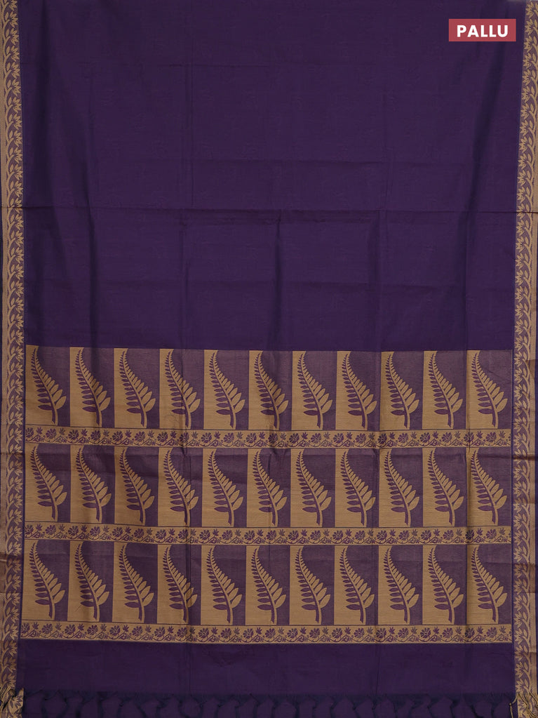Coimbatore cotton saree purple shade and blue with allover self emboss and thread woven border