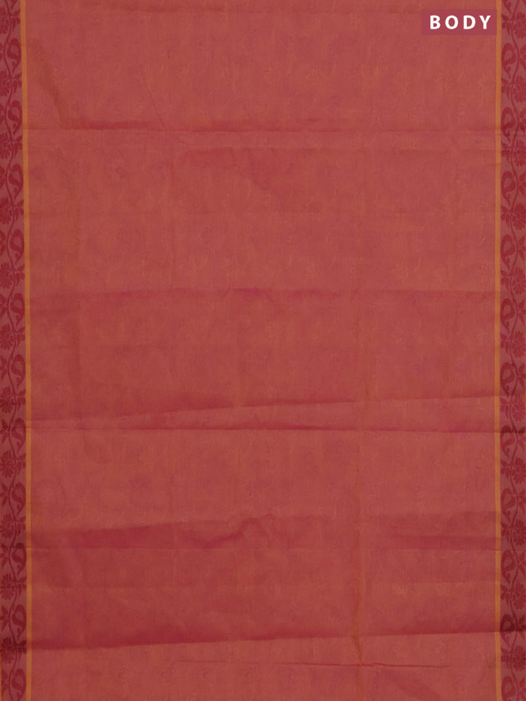 Coimbatore cotton saree rust shade and pink with allover self emboss and thread woven border