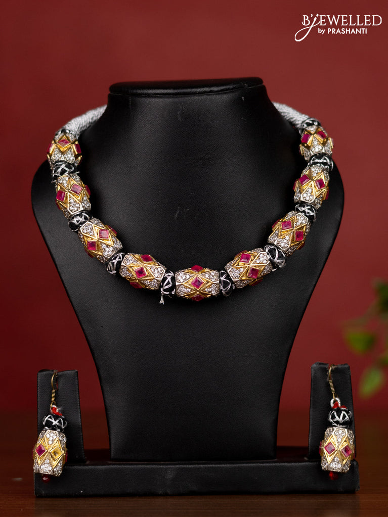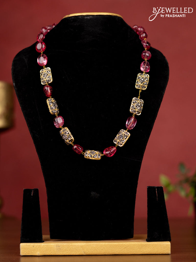 Jaipur beaded magenta pink stone necklace with minakari work without earrings