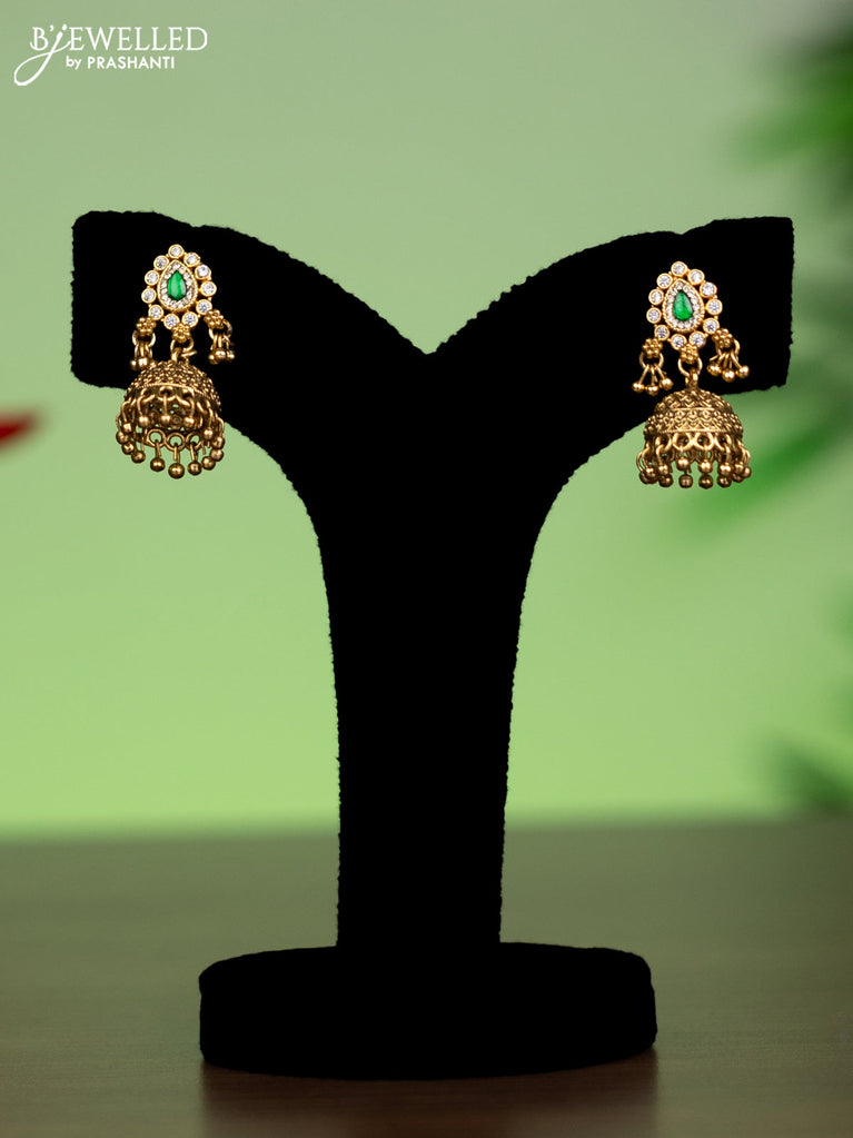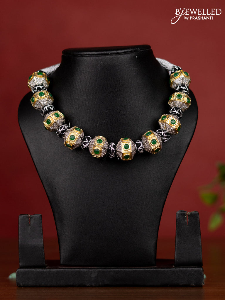 Jaipur beaded necklace with emerald and cz stone without earrinngs