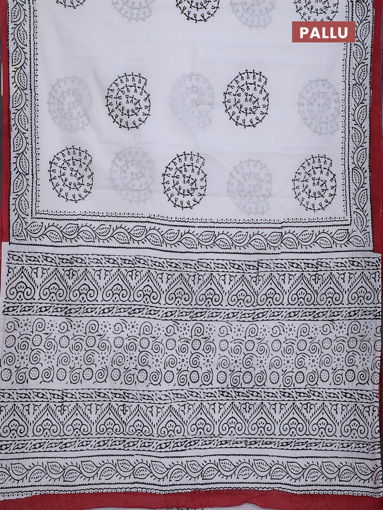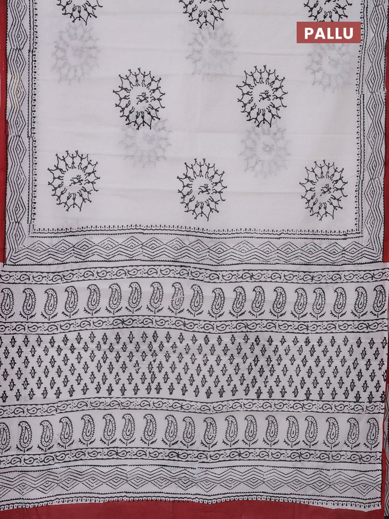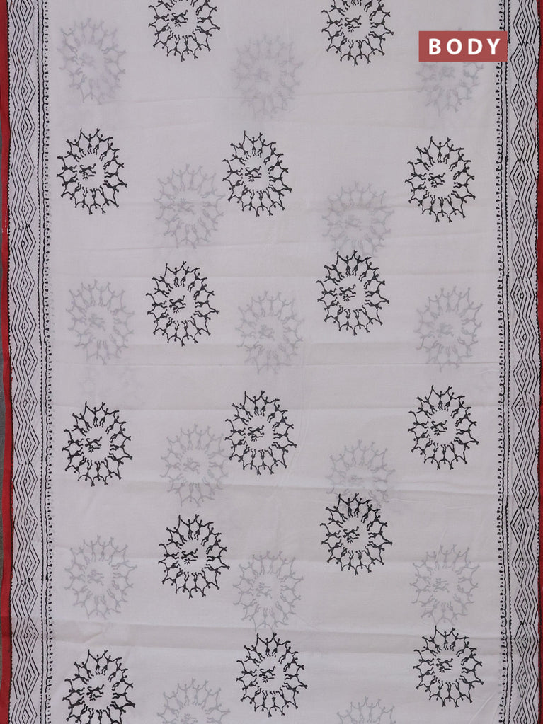 Jaipur cotton saree off white and maroon with warli butta prints and printed border