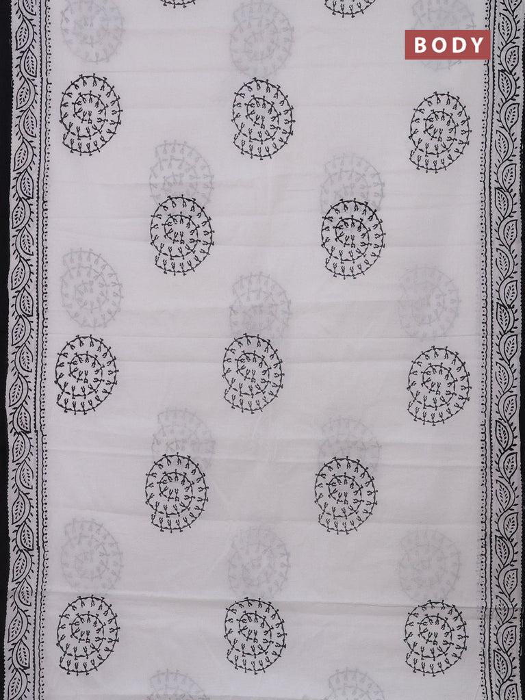 Jaipur cotton saree off white and black with warli butta prints and printed border