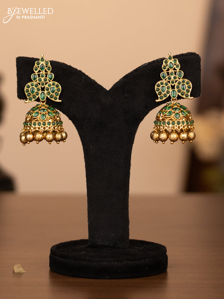 Antique necklace peacock design with jadau kundan stones and green & golden beads hanging without earrings