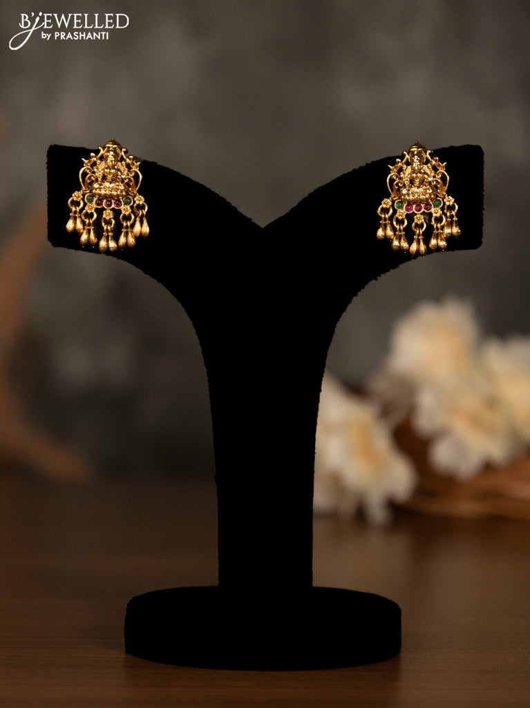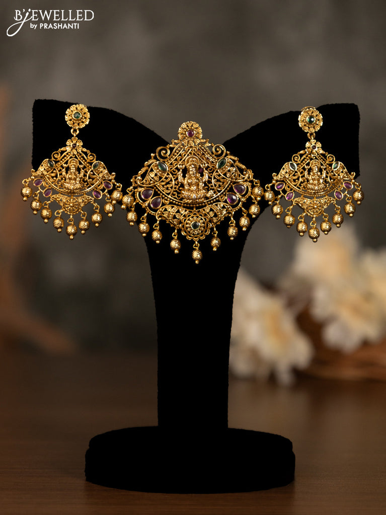 Antique pendant set lakshmi design with kemp stones and golden beads hangings
